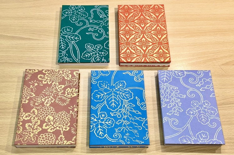 从印刷好的“京唐神”中剪下作为封面的部分,制成朱印帐。根据所切部位的不同而呈现出不同风格的花纹,可以品味到“京都Kakami”的深度和手工制作的乐趣。