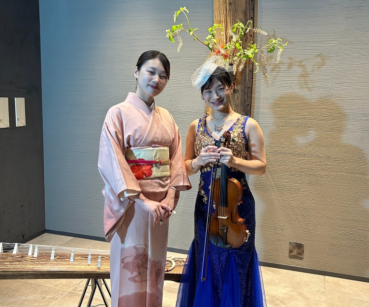 请享受西洋乐器小提琴与日本传统乐器古琴的特别现场演奏。