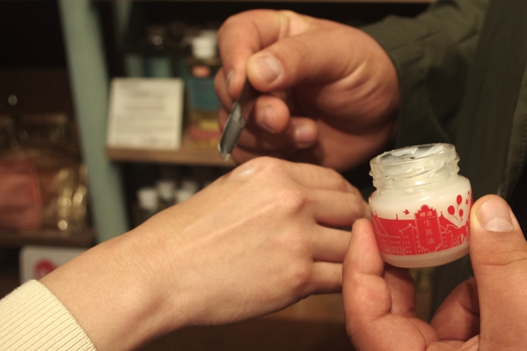 本店首推“马油多香型”。拿在手上有点硬的触感,但是随着体温会变成油状,和皮肤贴合。不仅可以作为护手霜和唇膏使用,还可以用于脸部和头发,是一款非常实用的单品。20g的铝罐装,携带方便。除了无香料之外,还有薰衣草和丝柏等精油,可以一边尝试香味一边选择。